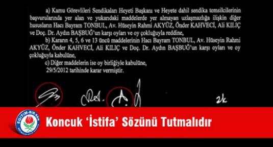 Eğitim Bir Sen, Koncuk ‘İstifa’ Sözünü Tutmalıdır