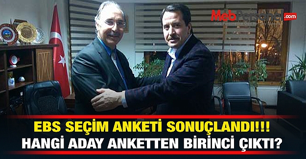Mebpersonel.com olarak yapılacak olan 5. Olağan Genel Kurulu sonucu hangi ismin başkan olarak görmek istiyorsunuz? Sorusundan hareketle bir anket hazırladık. Hazırlamış olduğumuz bu anket okuyucularımız tarafından büyük ilgi gördü. Anket sonuçlarını siz değerli okuyucularımızla paylaşıyoruz.