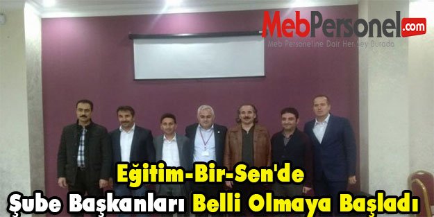 1-24 Kasım 2014 tarihleri arasında Şube Olağan Genel Kurulları ve Sendika (Genel Merkez) Genel Kurul Delegelerinin Seçimlerini yapacak olan Eğitim Bir Sen’in ilk şube başkanları belli oldu. Haftasonunda 29 şube seçime giderken bugün 18 şubede yönetimler belli oldu.