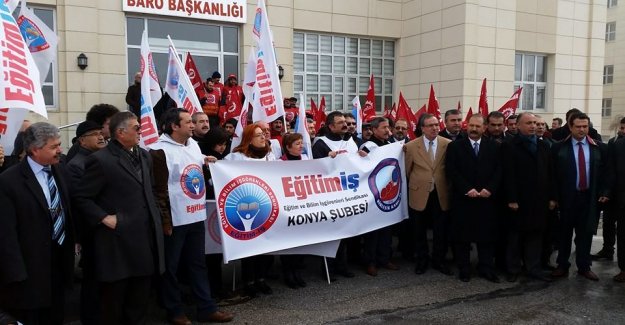 Konya Adliyesi önünde gerçekleştirilen basın açıklamasına Eğitim-iş Genel Başkanı Veli Demir, Genel Sekreter Mehmet Altıntop, Birleşik Kamu-iş Konfederasyonu Genel Başkanı Hasan Kütük, Konya Şube Başkanı Şükrü Balun ile Yönetim Kurulu Üyeleri, CHP Konya Milletvekili Atilla Kart, DİSK Konya Temsilcisi Ali Özçelik ile siyasi parti, sendikalar ve demokratik kitle örgütleri temsilcileri de katıldı.