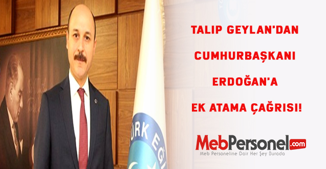 Aylardır ek atama bekleyen öğretmenlerin her platformda sesi olmaya çalışan Türk Eğitim-Sen Genel Başkanı Talip Geylan Cumhurbaşkanı Recep Tayyip Erdoğana ek atama konusunda bir çağrıda bulundu.