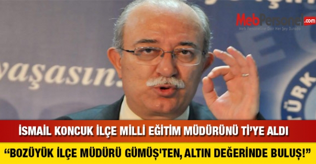 Türk Eğitim Sen Genel Başkanı İsmail KONCUK Facebook hesabında ki paylaşımında, Bozüyük İlçe Milli Eğitim Müdürü Hüseyin GÜMÜŞ ‘ün skandal resmi yazısını “BOZÜYÜK İLÇE MÜDÜRÜ GÜMÜŞ’TEN, ALTIN DEĞERİNDE BULUŞ!” paylaşımıyla ti’ye aldı.