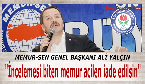 Memur-Sen Genel Başkanı Ali Yalçın Twitter hesabından açıklama yaptı. yalçın, Yaptığı açıklamada incelemesi biten memurların acilen görevlerine iade edilmesini istedi.
