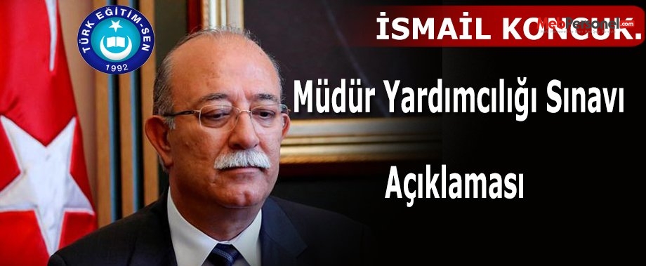 Türk Eğitimsen Genel Başkanı İsmail Koncuk’tan Müdür Yardımcılığı Sınavı Hakkında Açıklama İsmail Koncuk “MEYDANI BOŞ BIRAKMAYINIZ” MEB, eğitim kurumlarına müdür yardımcısı görevlendirmesi için, 20 Mart 2016 tarihinde yazılı sınav yapacak. Müdür yardımcılığı görevlendirmelerinde yazılı sınav puanını esas alınacağını, sözlü sınavın olmayacağını bildirdi. Konuya ilişkin bir açıklama yapan Türkiye Kamu-Sen ve Türk Eğitim-Sen Genel Başkanı İsmail Koncuk şunları söyledi: “Müdür yardımcılığı sınavı 20 Mart 2016 tarihinde yapılacak. Bir çok arkadaşımız “aman ne gerek var” diyebilir. Birçok sebeple haklı olabilirler, bu müdürlere mi hizmet edeceğiz, diyenler de var, biliyorum hayata bir makam, unvan penceresinden asla bakmadınız. Ancak müdür yardımcılığı ve müdür başyardımcılığı, müdüre hizmet yardımcılığı değildir.