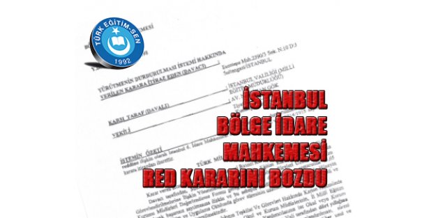 Eğitim kurumu yöneticilerinin değerlendirilmesi sürecinde kazanılan yürütmeyi durdurma kararlarına bir yenisi de İstanbul Bölge İdare Mahkemesi’nden eklenmiştir. Türk Eğitim Sen üyesi tarafından açılan davada, davacıya 73,65 puan verilerek görev süresinin uzatılmamasına ilişkin işlemin yürütmesinin durdurulması istemi ilk başta yerel mahkeme tarafından reddedilmiştir. Bu karara yapılan itiraz üzerine İstanbul Bölge İdare Mahkemesi Birinci Kurulu’nun 2014/7898 YD itiraz nolu ve 25.11.2014 tarihli kararı ile yerel mahkeme kararının kaldırılmasına ve dava konusu işlemin yürütmesinin durdurulmasına hükmedilmiştir. Kararın gerekçesinde ise hakkında değerlendirme yapılan yönetici için puan verilmeyen kriterler bakımından, puan vermemenin dayanağının, somut bilgi ve belge ile açıklığa kavuşturularak ispatlanması gerektiği belirtilmiştir.
