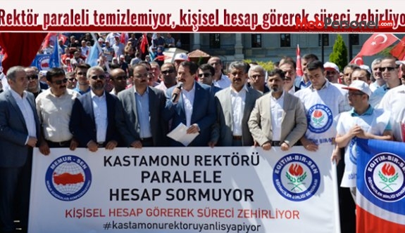 Eğitim-Bir-Sen ve Memur-Sen Genel Başkanı Ali Yalçın, Kastamonu Üniversitesi Rektörü Seyit Aydın’ın, rektörlük seçimlerinden kalma, gelecek dönem seçimlerdeki muhtemel adayları budama gibi süfli arzulara kapılarak, Fethullahçı Terör Örgütü (FETÖ) ile mücadele etmek yerine hesap görmek istediği kişileri görevden uzaklaştırdığını belirterek, “Rektör, masum insanları tabelaya yansıtmış, kamuoyuna paralelle mücadele numarası yapmıştır. Rektör Aydın, paralel olmadığı Kastamonu’da ve akademi çevrelerinde açıkça bilinen, dahası kendisine şifahi olarak sorulduğunda ‘evet, paralel değil’ diye cevap verdiği masum insanları ‘idari tasarruf’ adı altında bu nazik dönemde görevden uzaklaştırarak ‘itibar suikastı’ düzenlemiş, kendi kişisel hesabını, milletin hesabının üstünde tutmuştur. Rektör, paralel ihanet çetesinin tüm uzuvlarının koparılması, tüm uzantılarının sökülüp atılması, hakkın teslim, adaletin tesis edilmesi gereken bu netameli dönemde şahsi hesaplarını görmek için bulanık suda ava kalkışmış, süreci zehirlemiş, verilen mücadelenin mukaddesatına zarar vermiştir. Üniversitesinde paraleli gizleyip, yapılması gereken temizliği dizginleyip, kişisel hesaplarını görmeye kalkan bir rektör, millet değil, makam adamıdır” dedi.