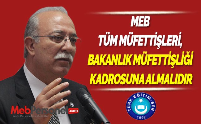 MEB TÜM MÜFETTİŞLERİ, BAKANLIK MÜFETTİŞLİĞİ KADROSUNA ALMALIDIR