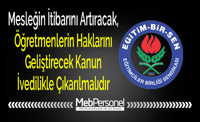 Mesleğin itibarını artıracak, öğretmenlerin haklarını geliştirecek kanun ivedilikle çıkarılmalıdır