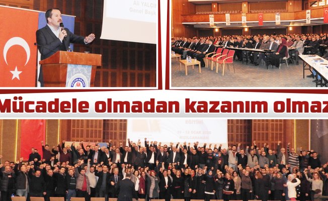 ğitim-Bir-Sen ve Memur-Sen Genel Başkanı Ali Yalçın, sorunlarla başa çıkmanın yolunun örgütlü mücadeleden geçtiğini belirterek, “Gücümüz örgütlülüğümüz, örgütlülüğümüz güvencemizdir. Üyeye, ülkeye ve yerküreye ilişkin kazanım üretme gayretimiz hız kesmeden devam edecektir. Her mücadele başarılı olmayabilir ama unutulmamalı ki başarılan her şey bir mücadelenin sonucudur. Çaba harcamaktan, ter akıtmaktan, mücadele vermekten asla vazgeçmeyeceğiz” dedi.