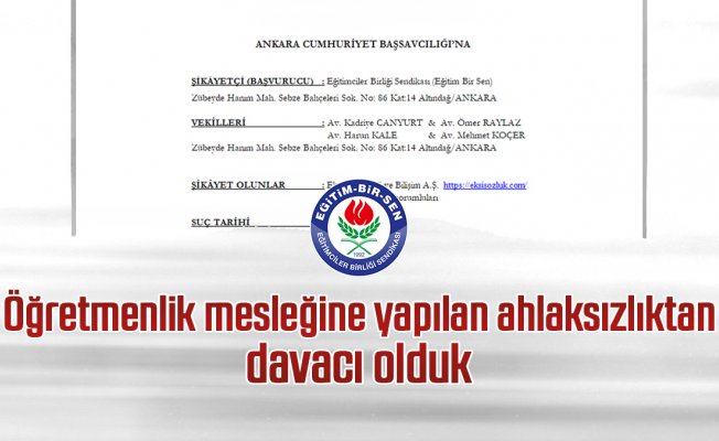 Bu ahlaksızlığa geçit veren, bu had bilmezi bir platformun sözcüsü yapan site de bu olaydan sorumludur. Bu tür kişilere böylesi bir yetkinin verilmesi bir yetersizlik göstergesidir. Bu nedenle, bu yakışıksız ifadelere yer veren ve bu ahlaksızlığı yapmaktan imtina etmeyen kişi ve kişiler hakkında Eğitim-Bir-Sen olarak davacı olduk. Öğretmenlerimize karşı haddini aşan bu kendini bilmezlerle mahkemede hesaplaşacağız.