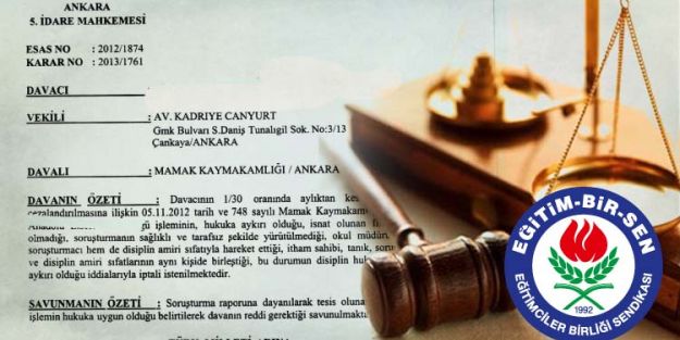 İdare mahkemesi, olayda taraf olan disiplin amirinin disiplin cezası veremeyeceğine hükmetti. Ankara 5. İdare Mahkemesi, Eğitim-Bir-Sen’in, okul müdürüne makamında hakaret ettiği gerekçesiyle aylıktan kesme cezası verilen üyesi adına disiplin cezasının iptali istemiyle açtığı davayı karara bağlayarak, söz konusu işlemi iptal etti.