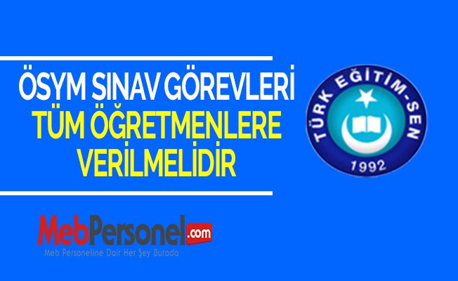 Dolayısıyla Türk Eğitim Sen olarak ÖSYM tarafından yapılan sınavlarda Rehberlik Araştırma Merkezi (RAM), Halk Eğitim Merkezleri (HEM), Mesleki Eğitim Merkezleri (MEM) ve Bağımsız Anaokullarında görevli öğretmenlerimiz de dahil olmak üzere görev almak isteyen tüm öğretmenlere sınav görevi için başvuru hakkı verilerek sınavlarda görevlendirilebilmeleri ve bu konuda mağduriyetleri giderilmesi hususunda Ölçme, Seçme ve Yerleştirme Merkezi Başkanlığı’na talepte bulunduk.