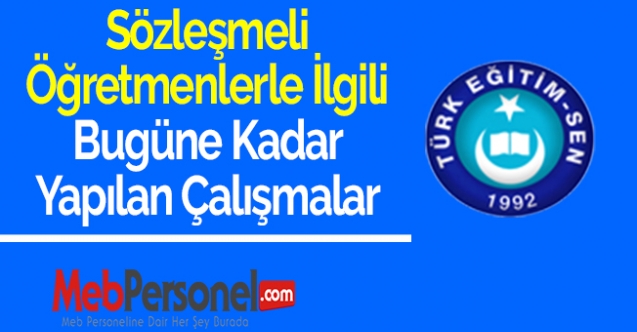 Türk Eğitim-Sen sözleşmelilikle uzun yıllardır mücadele etmektedir. Sözleşmeliliğin kaldırılması için basın açıklamaları, eylemler yapan, onların sorunlarının her fırsatta kamuoyu gündeminde yer almasını sağlayan, sözleşmeliliğin kölelik olduğunu, sözleşmeli öğretmenlik uygulaması ile verim sağlanamadığını, bununla birlikte aile bütünlüğünün bozulduğunu vurgulayan sendikamız, aynı zamanda sözleşmelilik uygulamasını defalarca yargıya taşımıştır.