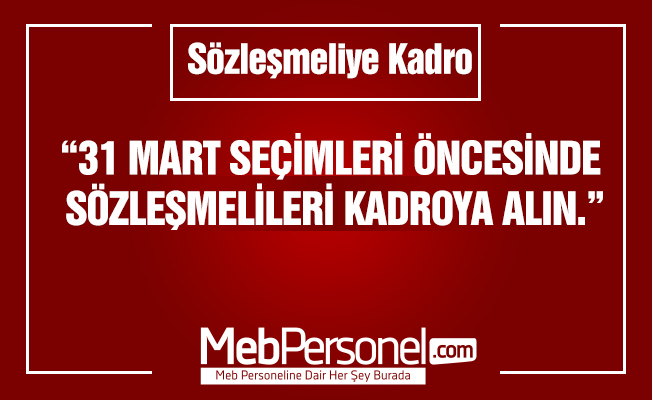 Talebimiz; 2011 yılı seçimleri öncesinde yapıldığı gibi, 31 Mart yerel seçimleri öncesinde de tüm sözleşmelilerin kadroya alınmasıdır.