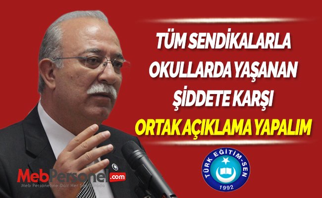 “Tüm sendikalara teklifimizdir.18 Aralık Pazartesi günü ilk derse başlamadan tüm okullarımızda şiddete ve saldırılara karşı ortak açıklama yaparak şiddeti hep birlikte kınayalım.