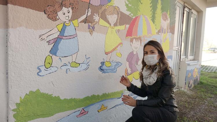 Görsel sanatlar öğretmeni Şengül Bulutyel ise, “İlçemizde bulunan Deniz ve Orman Okulu´nda öğrencilerimiz hem ormanı hem denizi tanıyorlar. ‘Pandemi döneminde okulumuza nasıl bir katkı yapabilirim ve öğrencilerimizin hayal dünyasına nasıl dokunabilirim’ diye düşündüm ve yaklaşık 3 ay önce giriş kapısına resim çizmeye başladım. Öğrencilerimiz burada yağmurda ve güneşli havalarda eğitim aldıklarını bildiğim için sarı yağmurluklu öğrenci, ilçemizin ender bitkilerinden kum zambağı, deniz canlılarından caretta ve balıkresimleri, ağaç gibi çocukların hayal dünyasında güzel bir yer bırakmak adına resimlerimizi çizdik. Pandemi döneminde yaklaşık 3 ay önce başladığımız duvar resimlerimizi inşallah bahar aylarında tamamlamış olacağız” diye konuştu.
