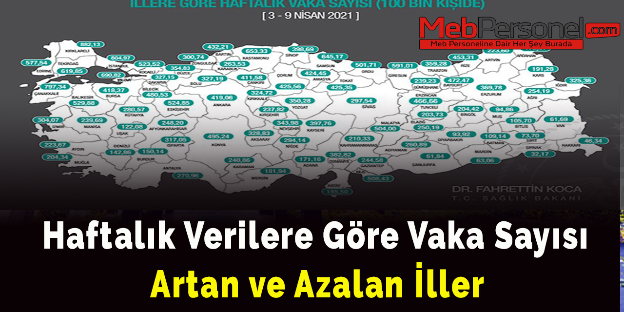 Sağlık Bakanlığı, 81 il için 3-9 Nisan’da her 100 bin kişide görülen Kovid-19 vaka sayılarını açıkladı.