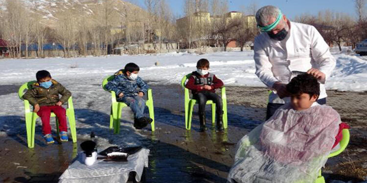 Erciş ilçesine 5 kilometre uzaklıkta bulunan Latifiye Mahallesi’nin muhtarı 3 çocuk babası Veli Doğu, 15 Şubat’ta köy ve kırsal mahalle ilkokullarında başlayacak olan yüz yüze eğitime sayılı günler kala, mahallesinde ilkokulda okuyan çocuklara sürpriz yaptı. İlçe merkezinde getirdiği kuaförle ev ev dolaşıp, çocukları ücretsiz tıraş ettiren Doğu, çocuklara çeşitli kırtasiye malzemesi de hediye etti.