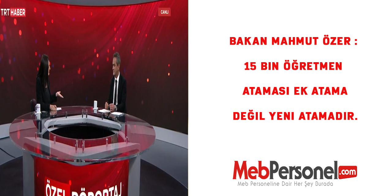 Milli Eğitim Bakanı Mahmut Özer : 15 Bin atama ek atama değil yeni atamadır. Konuya dair bakan Mahmut Özer’in açıklamalarını aşağıdan izleyebilirsiniz.