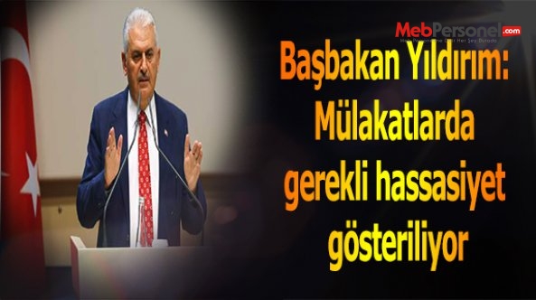 Başbakan Yıldırım: Mülakatlarda gereken hassasiyet gösteriliyor. Başbakan Binali Yıldırım cuma namazı çıkışında basın mensuplarının sorularını yanıtladı. Gündemdeki öğretmen atamaları ile ilgili de konuşan Başbakan Binali Yıldırım: “Mülakatlarda bizim hassasiyetlerimiz FETÖ ve PKK’dır. Vatansever teröre bulaşmamış tüm öğretmen adaylarımıza kapımız açıktır. Uygulamalar bu yönde yapılıyor” dedi.