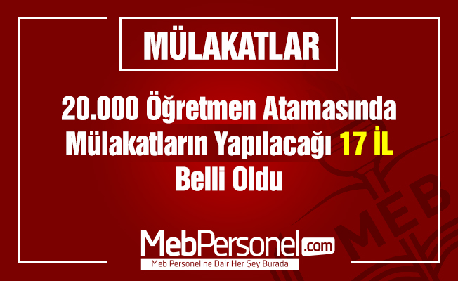 2019 yılı Şubat ayının 7’sinde ataması tamamlanacak 20 bin sözleşmeli öğretmen bakanlık tarafından belirlenen 17 ilde mülakata girecek.