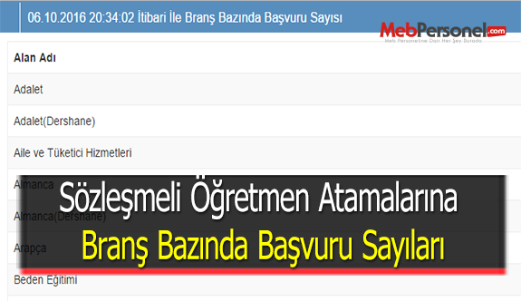 6 Ekim itibariyle hangi branştan kaç öğretmen adayı başvuru yaptı? Branş bazında başvuru sayıları nasıl?