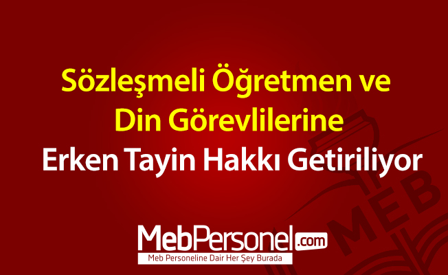 Kanun teklifinde sözleşmeli din görevlileri ile ilgili de madde yer aldı. Mevcut durumdaDiyanet İşleri Başkanlığı’nda istihdam edilen sözleşmeli personelden dört yıllık çalışma süresini tamamlayanların talepleri halinde bulundukları yerde Din Hizmetleri Sınıfına ait kadrolara atanacağı ve bu şekilde atananların aynı yerde en az iki yıl daha görev yapacağı hükmü bulunuyor. Yeni düzenleme zorunlu görev süreleri üç yıl sözleşmeli, bir yıl da kadrolu olmak üzere toplam dört yıla indiriliyor.