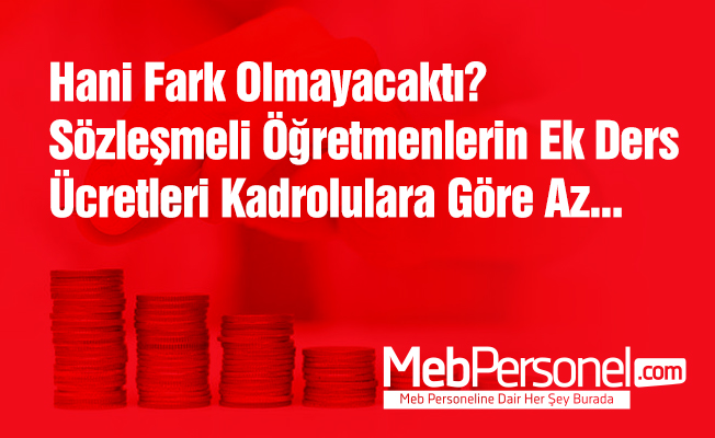 Fakat ek ders ücretlerinde denge sağlanamadı. sözleşmeli öğretmenlerin ek ders ücreti 2017 yılı ilk 6 ay için 9,72 TL iken kadrolu öğretmenlerin bu ücreti 11,34 TL olarak belirlendi. Branşa göre farklılık gösterse de sözleşmeli öğretmenlerin yıllık kaybı 500 ile 3000 TL arasında değişiyor.