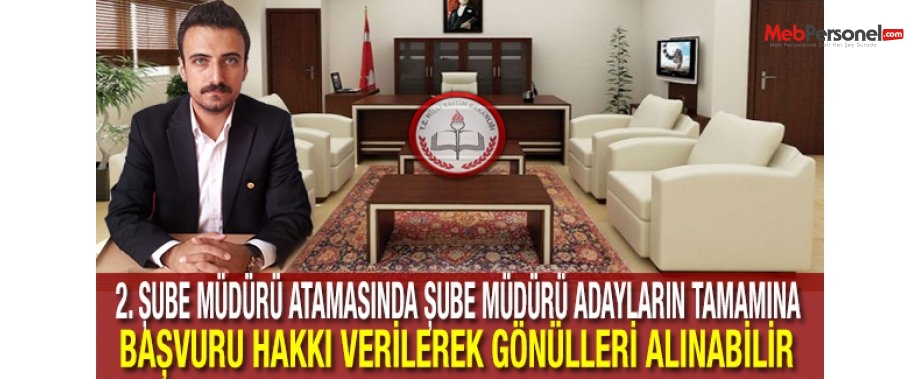 İşin özü ortada şube müdürü yazılı sınavını kazanmış ve mülakat puanlarıyla beraber atamaya esas aritmetik puanları ile atanabilecek yüzlerce şube müdürü adayı var bir o kadar da boş münhal kadrolar var.Geçmişte yaşanılan sadece mülakat puanına dayalı atamalardaki mağduriyetin giderilmesi adına şu anda bekleyen şube müdürü adayların tamamına 2. Şube müdürü atamalarında başvuru ve atanabilme haklarının verilmesi bakanlığımız açısından önemli ve güzel bir adımı olarak hafızalara kaydedilecek ve bir nebzede olsa şube müdürlerinin gönülleri de alınmış olacak.Bu adım Bakanlığımıza bir şey kaybettirmeyecek aksine kazanım olarak geri dönecektir.