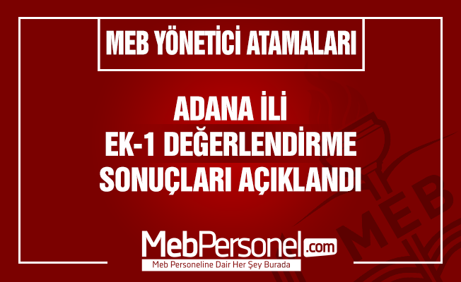 MEB Yönetici atamalarında Ek-1 değerlendirme sonuçları açıklanmaya devam ediyor. Ek-1 değerlendirme sonuçlarını açıklayan illerden biri Adana oldu. Adana İl Milli Eğitim Müdürlüğü Ek-1 değerlendirme sonuçlarını açıkladı.