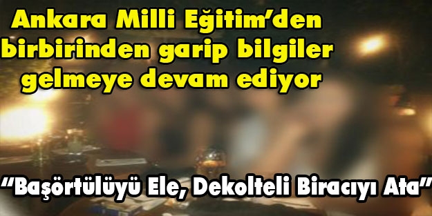 Habervaktim.com’a gelen çok özel bilgilere göre,Ankara İl Milli Eğitim’de kimi müdür adaylarının başörtülü oldukları için elendikleri; yüksek notlar verilerek “müdür” atanan öğretmenler arasında ise sosyal paylaşım sayfalarından sürekli alkol alırkenki fotoğraflarını paylaşan isimlerin olduğu iddia ediliyor.