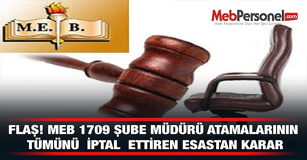 Ankara 4. İdare mahkemesinin tüm şube müdürü atamalarını iptal ettiren kararından sonra Ankara 9. İdare mahkemesinden sonra MEB 1709 şube müdürü atamalarının tümünü iptal ettiren ESASTAN yeni karar.