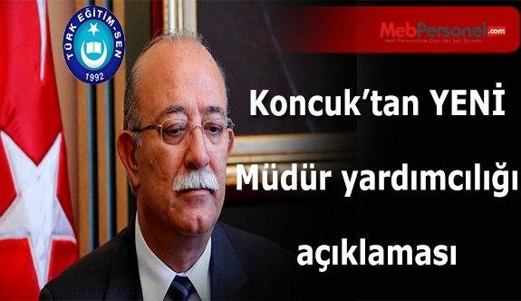 Koncuk sosyal medya hesabından yaptığı açıklamada şunları kaydetti: “Bilindiği üzere müdür yardımcılığı sınavında TC İnkılap tarihi konusunun olmaması sebebiyle yargı yürütmeyi durdurma kararı vermiştir. Bu karar sınav kazanan adayların haklı endişesine yol açmıştır. Bu karar karşısında MEB’in nasıl bir yol takip edeceği merak konusudur.