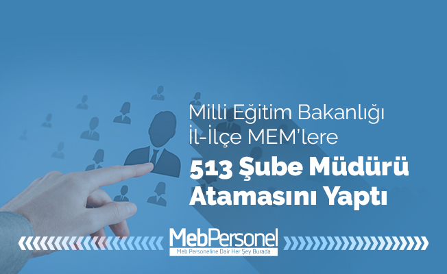 MEB, İL-İlçe Milli Eğitim Müdürlükleri 513 Şube Müdürü Kadrosun atama yapıldı. Atama Sonuçları İçin Tıklayınız