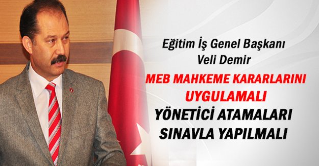 Eğitim İş Genel Başkanı Veli Demir Eğitim İş olarak yönetici atama yönetmeliğini ilk olarak Eğitim İş’in dava ettiğini ve önümüzdeki günlerde benzer bir kararın çıkacağını belirtti.