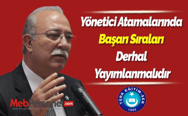 ”MEB yönetici atama başarı sıralarını il il yayınlama talimatı vermelidir. Adaylar kaçıncı sırada olduğunu bilmeden nasıl tercih yapacak? MEB’in kaygısını anlıyoruz.Başarı sıraları yayınlanırsa mülakatta yaşanan şaibe ortaya çıkacaktır.Buna rağmen başarı sıraları açıklanmalı. Türk Eğitim Sen sonuçlara aldırış etmeden, mülakata karşıdır.Kaç üyemiz kazandı, kaybetti kaygısını çoktan aştık.Bizim için ilke önemlidir. “Mücadelemiz her alanda mülakat kaldırılıncaya kadardır.” demiştik.Memur,öğretmen ve yönetici atamada ucube mülakat er veya geç kalkacaktır. MEB’i müdür,müdür yardımcısı başarı sıralarını derhal ilan etmeye davet ediyorum.Tercihlerden önce bu ilanlar her il düzeyinde yapılmalıdır. MEB diğer taleplere de kulak tıkamayı bırakmalıdır.Alan değişikliği, 2. İl dışı tayinler, il içi özür tayin taleplerini unuttuk sanmasınlar. Bilhassa alan değişikliği konusunda MEBneyaptığınıbilmemektedir.Geçen yıl oldu olacak denilen diplomaya bağlı alan değişikliği yapılmalıdır.”